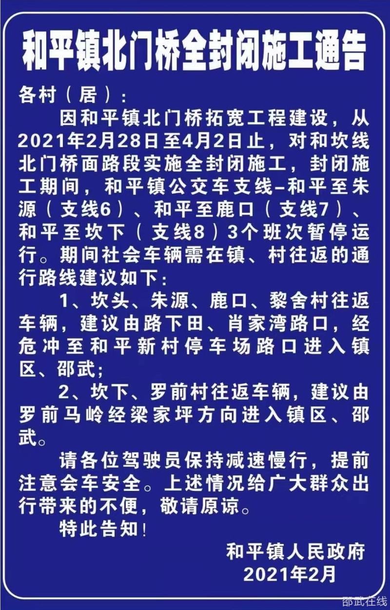 ºÍƽÕò±±ÃÅÇÅÈ«·â±ÕÊ©¹¤Í¨¸æ