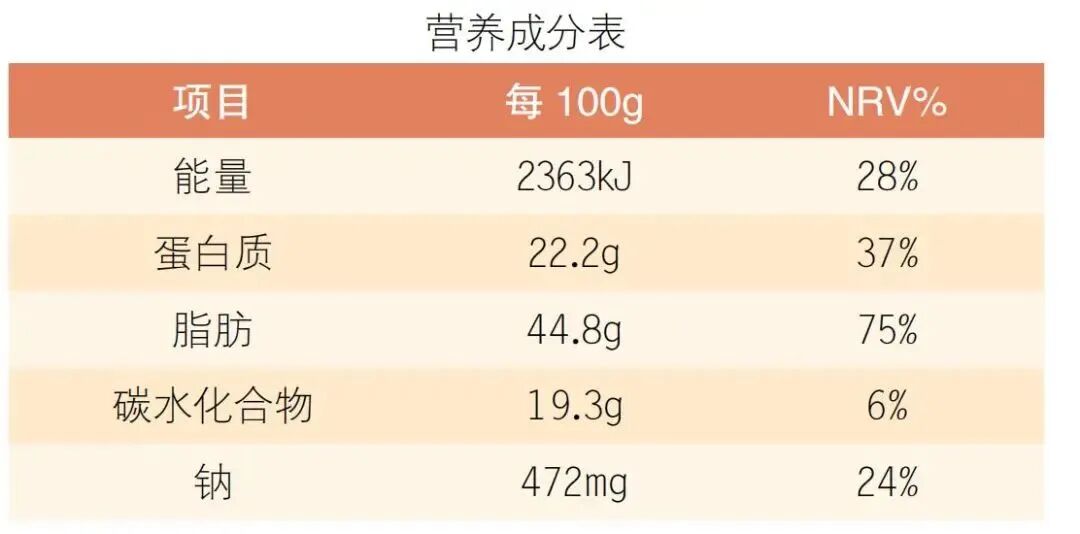 04 ÔõôÀí½âÓªÑø³É·Ö±í£¿ ÒÔijÖÖ¼á¹ûµÄÓªÑø³É·Ö±íΪÀýÀ´×öÏêϸ˵Ã÷£º Éϱí×î×ó±ßÒ»À¸µÄÄÜÁ¿¡¢µ°°×ÖÊ¡¢Ö¬·¾¡¢Ì¼Ë®»¯ºÏÎïºÍÄÆÊÇÎÒ¹úÒªÇó±ê×¢µÄ£¬ÎÒÃdzÆÖ®Îª¡°1+4¡±Ç¿ÖƱê×¢¡£Ê³Æ·ÖÐÊÇ·ñÐèҪչʾ¡°¸Æ¡±¡¢¡°Ìú¡±¡¢¡°Î¬ÉúËØA¡±µÈÆäËû³É·Ö£¬ÆóÒµÓ¦¸ù¾Ý²úÆ·ÌØÐÔ×ÔÔ¸É걨¡£ ÓªÑø³É·Ö±íÖмäÁбêʾµÄÊýֵΪ¶ÔÓ¦µÄº¬Á¿ÊýÖµ£¬Ò»°ãÒÔÿ100gºÍ/»òÿ100mlºÍ/»òÿ·ÝµÄº¬Á¿À´±íʾ¡£ ±íÖÐ×îÓÒ±ßÒ»À¸Îª²úÆ·ÖÐÿÖÖÓªÑøËØµÄº¬Á¿ÓëÆäÓªÑøËØ²Î¿¼ÖµµÄ°Ù·Ö±È£¨NRV%£©¡£ÒòΪÏû·ÑÕߺÜÄÑ´ÓÊý×Ö±íÃæ¿´³öʳÎïÖÐijÖÖÓªÑøËØµÄº¬Á¿Ë®Æ½£¬Èç¹ûÓðٷֱȱíʾ¾ÍÈÝÒ×Àí½âÁË¡£ ±ÈÈ磬ÉÏÊö100g¼á¹ûÖеÄÖ¬·¾º¬Á¿Îª44.8g£¬¾¼ÆËãÕ¼Ö¬·¾NRVµÄ°Ù·Ö±ÈΪ¡°75%¡±£¬ÔòÈÏΪÈç¹û³Ô100gÕâ¸ö²úÆ·£¬´ó¸ÅÄܹ»Âú×ã³ÉÈËÒ»ÌìËùÐèÖ¬·¾µÄ 75%£¨ÓÉÓÚÿ¸öÈ˵ÄÉí¸ß¡¢ÌåÖØ¡¢ÌåÁ¦»î¶¯Ë®Æ½µÈ²»Ò»Ñù£¬ÐèÇóÁ¿ÓвîÒ죩£¬ËùÒÔÈç¹ûÔÙ³ÔÆäËûº¬Ö¬·¾¶àµÄʳÎï¾ÍÒªÊʵ±¿ØÖÆÁË¡£