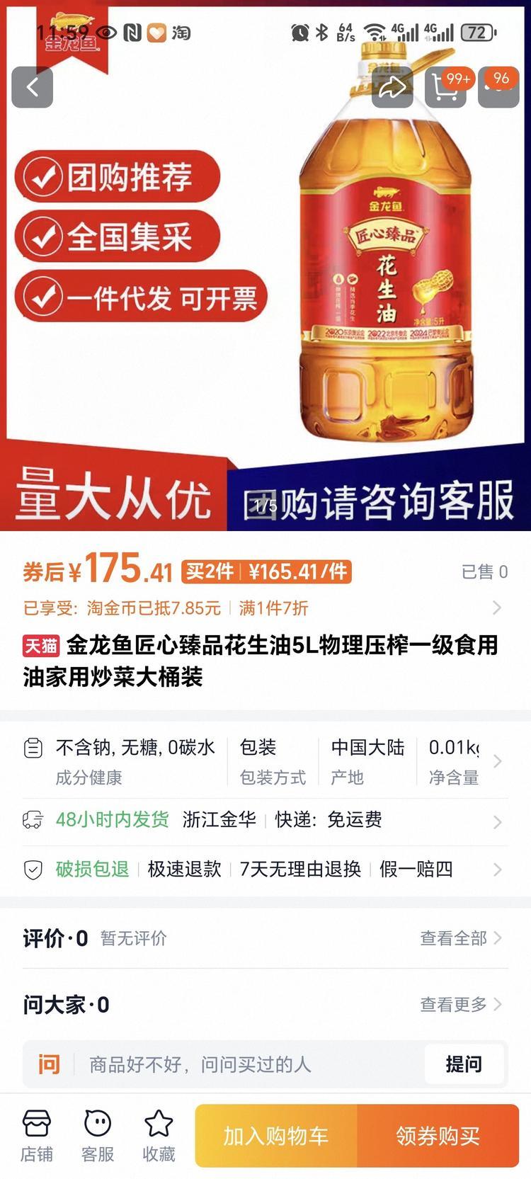 3½ðÁúÓã½³ÐÄÕ鯷»¨ÉúÓÍ5Éý£º148Ôª/Ͱ