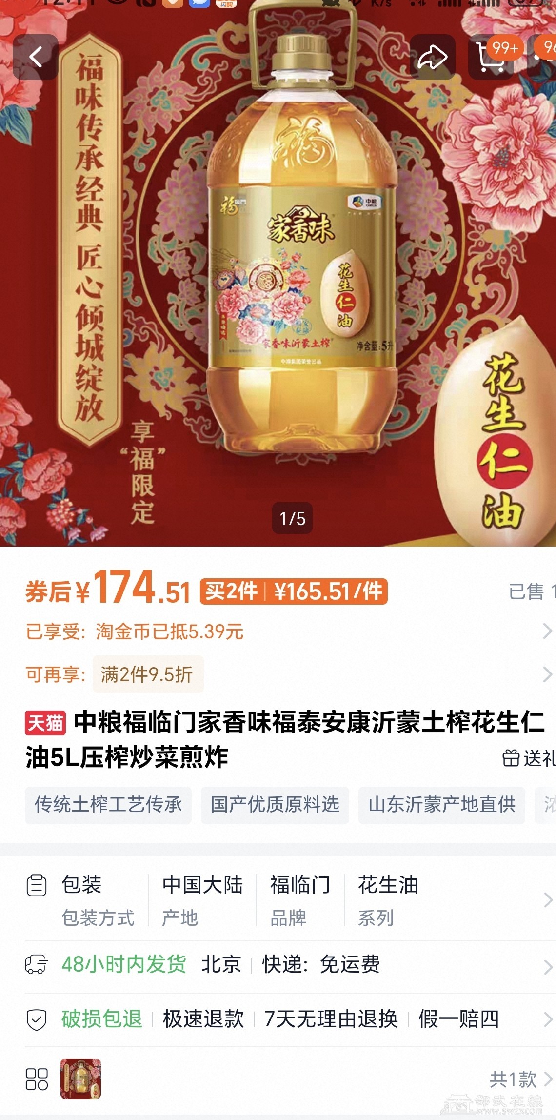 1ÖÐÁ¸¼ÒÏãζÈýºÃ»¨ÉúÈÊÓÍ5Éý£º80Ôª/1Ͱ£¨ÍøÉϼ۸ñ175Ôª£¬ÒòΪÉú²úÈÕÆÚ²»Ì«ºÃ£¬°ë¼Û³öÊÛ£©