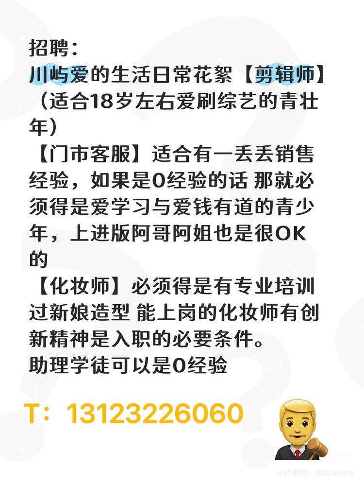 招剪辑师 化妆师 客服销售